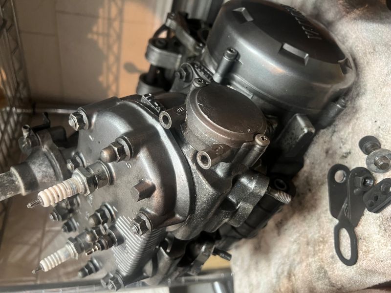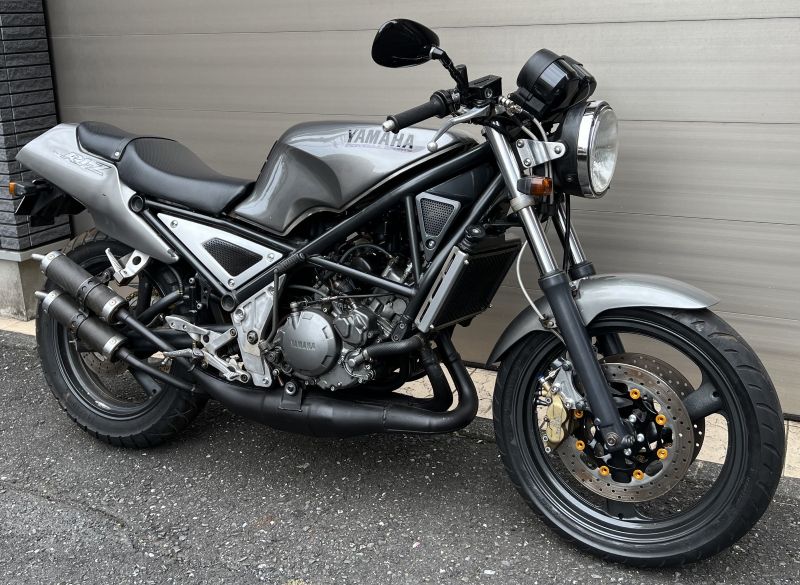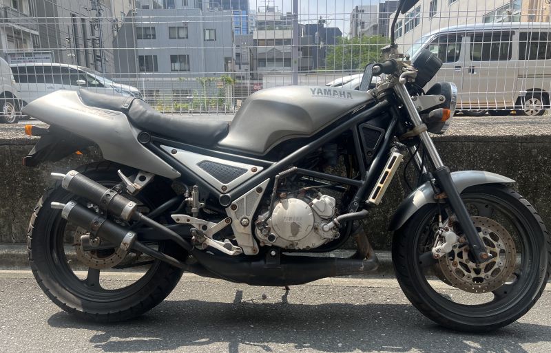 前回はシリンダーを井上ボーリングさんのICBMに特注で作ってもらって、ピストンなども特別な加工をしてもらったエンジンを積んでいたのですが、売却にあたってスペアエンジンに乗せ換えて売却したため、エンジンのユニットがそのまま残っていてもったいないから使いたいとずっと思っていました。ヤフオクでエンジンの壊れている車両をさがしていたのですが、そんなに都合の良いのものは出品されず、そういうやつはバラバラにして部品で売った方がトータルで高くれるのでしょう。距離走っているやつも探しましたが、いずれも高騰していてぼろくても40万円くらいださないと買えません。のんきにまっていたらちょうどシリンダーから上(いわゆる腰上)がないものが出品されたので落札しました。実は腰上なしで結構錆びているのに結構入札があって結構高くつきました。まあいまやRZは高すぎて買えないので、R1-Zでも人気があるんですね。Z1が高すぎでゼファーまで値上がりしちゃったようなものかしら。ちなみに落札したのは1992年モデルで最終型でした。1992年型のため、ライトのオンオフのない常時点灯タイプ。右側のスイッチボックスも別ものです。色は銀でXJR1300と同じ系統です。ヤフオクの不動車なのでものすごく状態が悪いだろうと覚悟してましたが、思ったり状態が良くて一安心。タンク内も錆びていますが、可愛いもんです。ガソリンいれたら盛大にガソリンが噴き出したり、ちょっと鉄の棒でつついただけで鉄がぼろぼろ落ちてきてタンクの下に大穴が空いたりすると修理が非常に面倒ですが、普通に錆びてるだけなら楽勝です。
